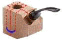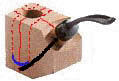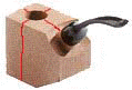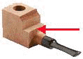 Der Winkel bei gebogenen Pfeifen verläuft anderes. Es besteht die Gefahr, später zu weit auszukehlen und den Rauchkanal zu verletzen. Also aufpassen beim Auskehlen.